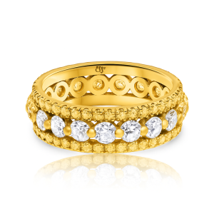 18K Gold necklace set with round diamonds, ruby ַ sapphires.