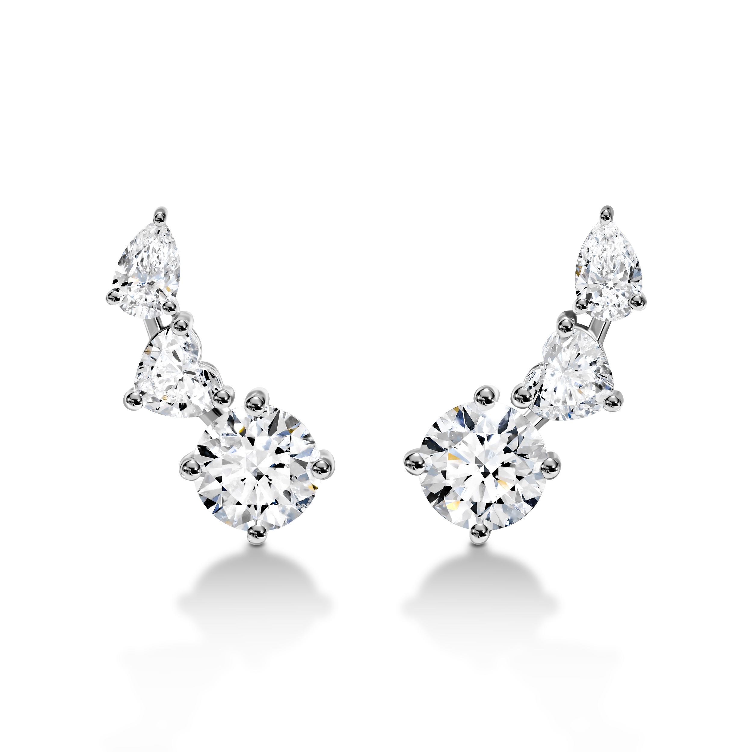 14/18 K gold earrings set with round, heart shape & pear shape diamonds