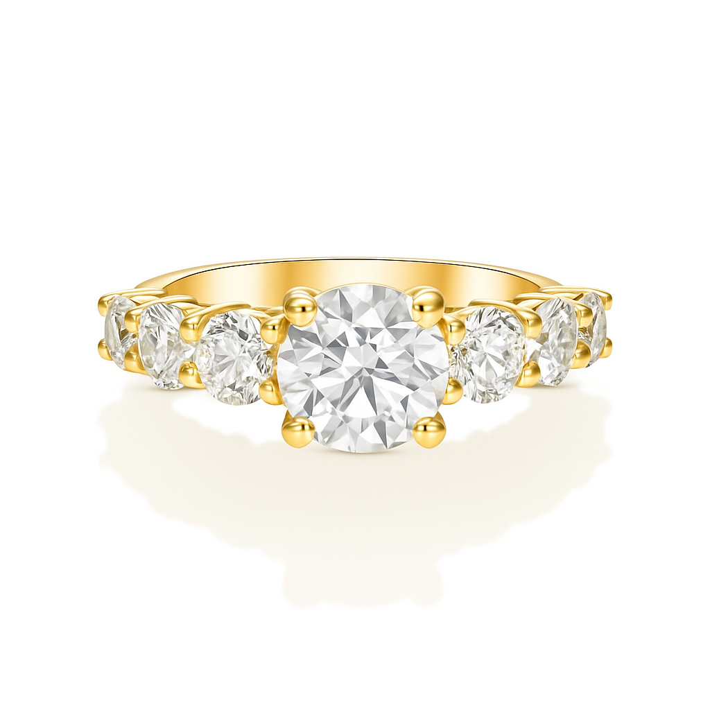 14/18K gold ring set with round center diamonds & round side stone diamonds